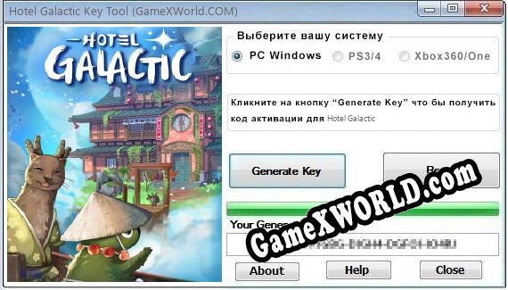 Представляем вашему вниманию рабочий ключ для последней версии игры (1.0 и выше), который вы можете скачать с нашего сайта GameXWorld.COM совершенно бесплатно. Представляем вам ключ для игры Hotel Galactic! Сам ключ будет уникальным, и послужит только для активации игры. Этот кейген от LnDL будет работать и на более поздних версиях.