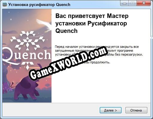 Приветсвуем на GameXWorld.COM! Если вы зашли на эту страницу, вы наверняка искали русификатор для Quench. Здесь вы можете скачать русификатор для версии игры 1.0 и выше. На данный момент доступен русификатор от ZENiTH.